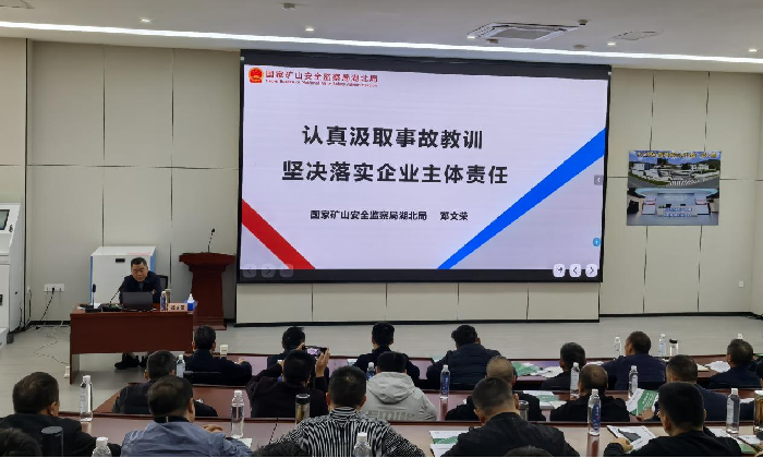国家矿山安监局湖北局党组成员、副局长邓文荣作专题授课,系统阐述了企业履行安全生产主体责任的具体路径与工作要求。他强调,矿山企业主要负责人要深入学习研究事故特点与规律,从他人事故中深刻汲取教训,进一步强化安全生产措施,坚决杜绝同类事故重复发生;要进一步提高思想认识,深刻认识安全生产极端重要性,坚持依法治安推动科学发展,坚持目标导向实现安全发展、坚持问题导向促进高质量发展。